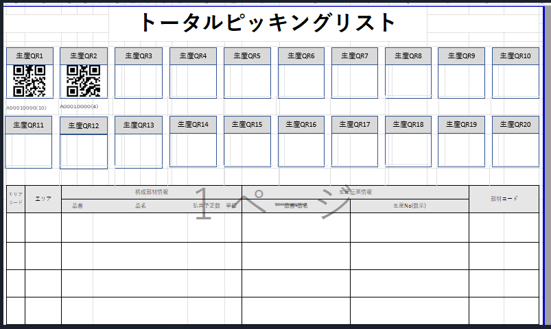 生産Noごとに構成部材の保管場所を決めている場合は、前者がおすすめです - 生産で使用するときに、トータルピッキングリストの上の生産NoQRを読み取り、部材引落を実施します