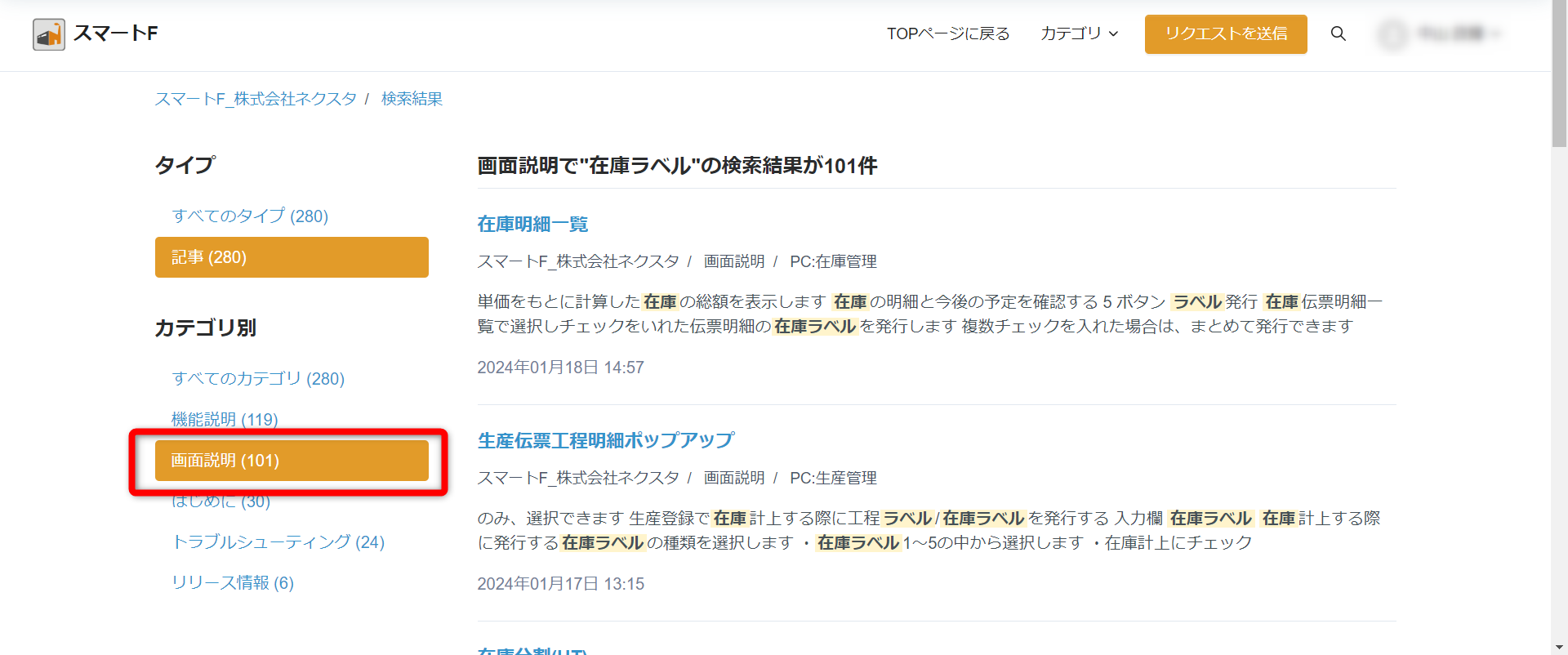 ◆以下は「画面説明」のカテゴリで絞り込んだ場合のイメージです。